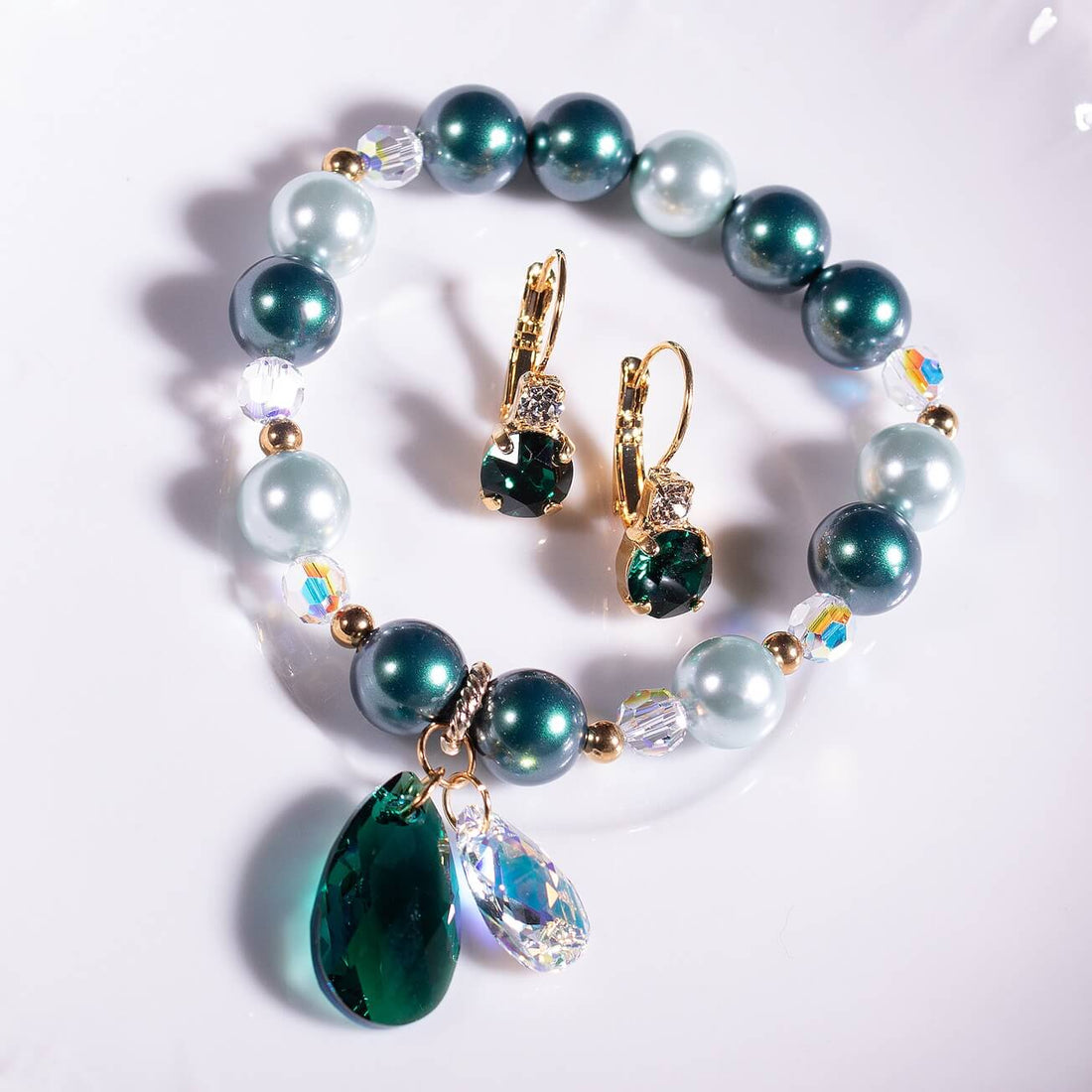 Maigi rozā rotu komplekts 'kristālu auskari un pērļu rokassprādze'