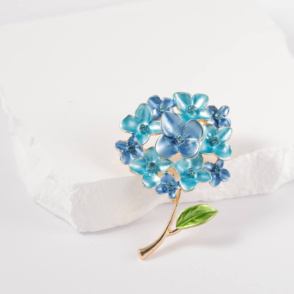 Delicate brooches with sparkling crystal flower decorations. Brooches in various colors with gold-plated clasps are a great gift idea. The brooch can be used as a decoration for a jacket or other clothing.