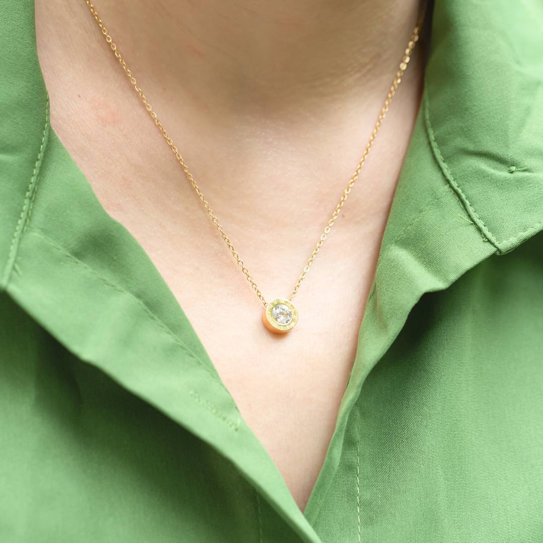 Klasiska ķēdīte ar kulonu un vienu kristālu
