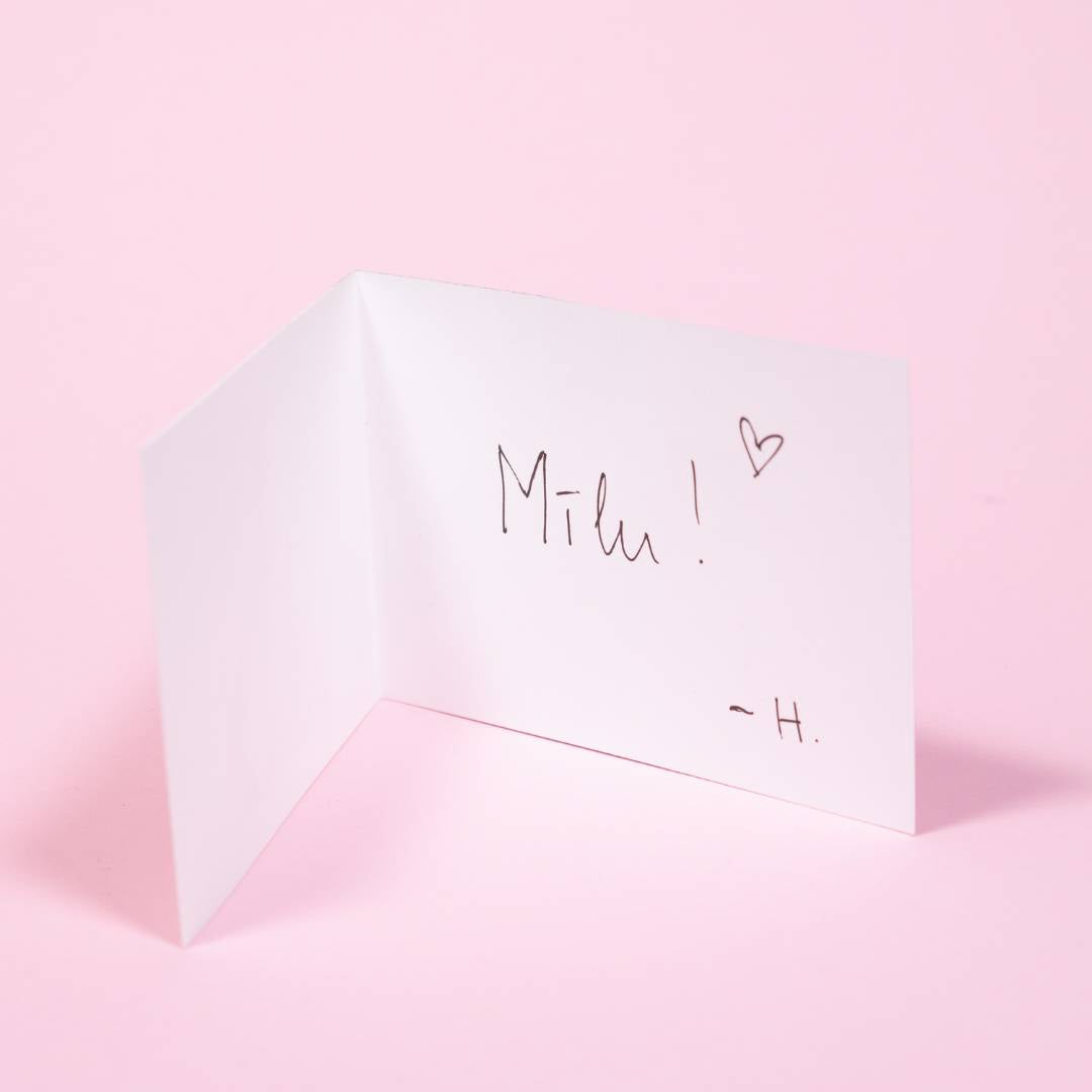 Piemēram: "Daudz laimes!", vai "Mīļo mammu!".