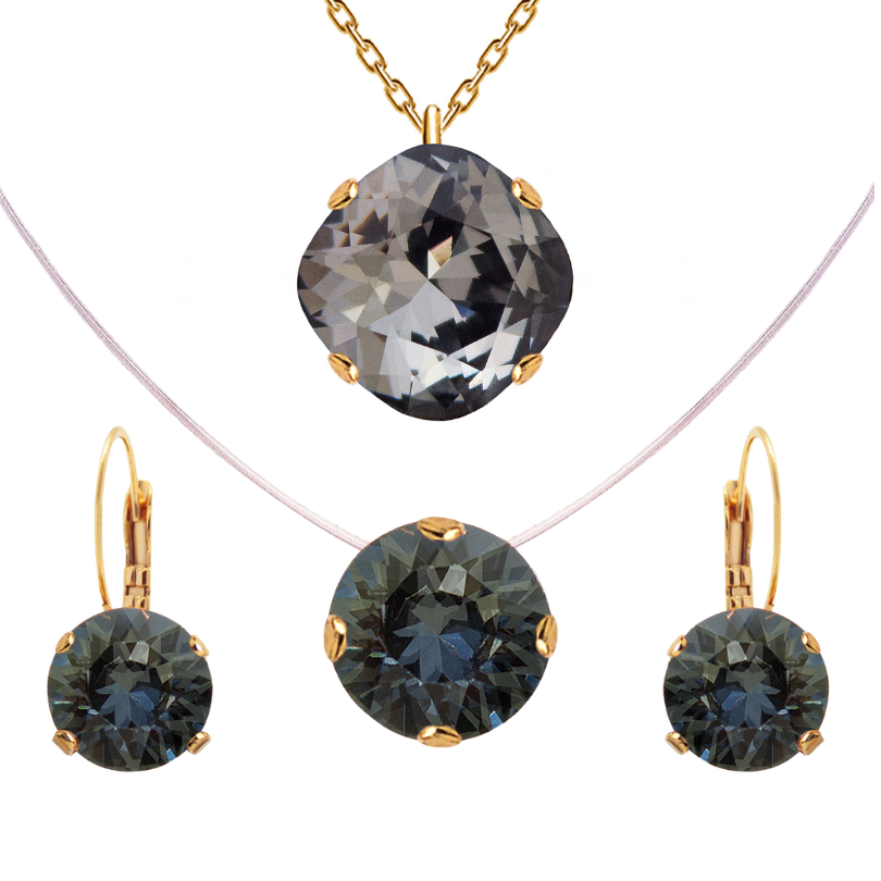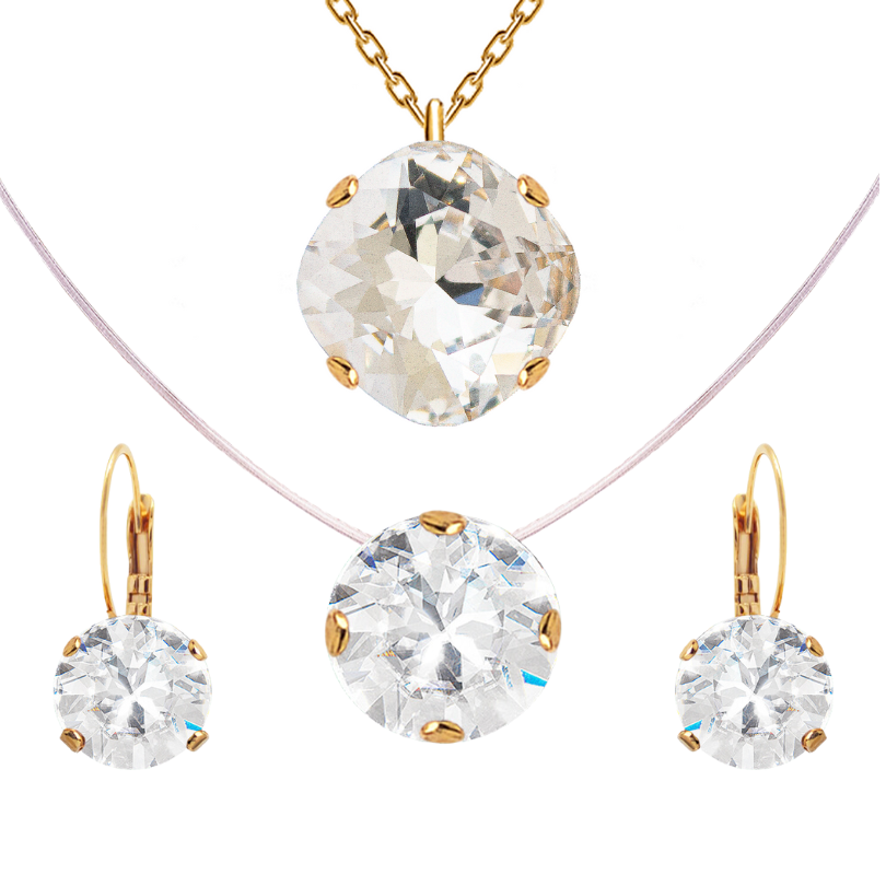 Eleganta neredzamā kaklarota ar kristālu un pieskaņoti auskari