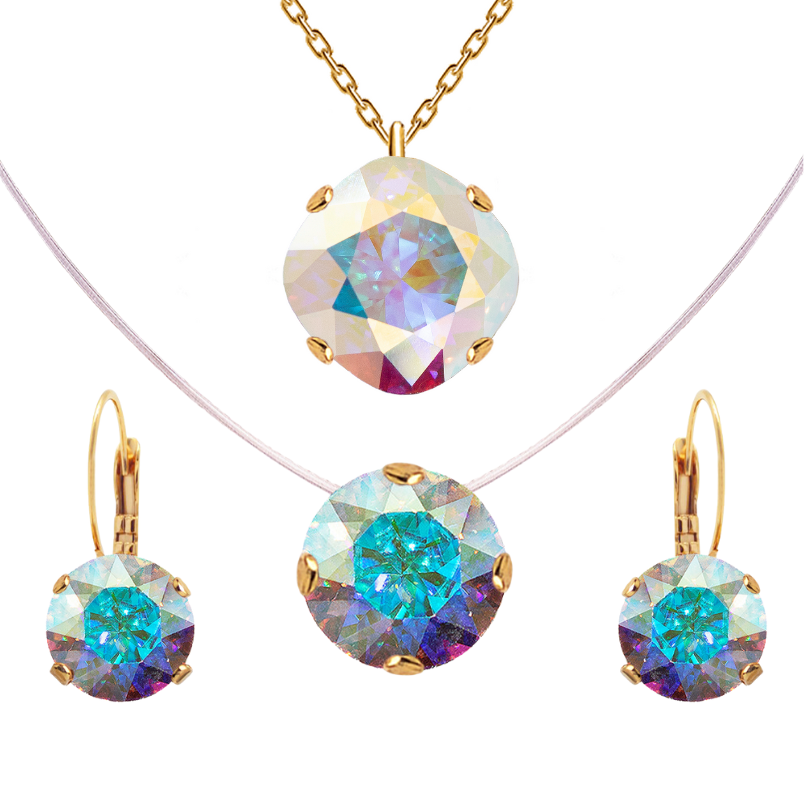- Kaklarotai 10mm kristāls, auskariem 8mm kristāli, neredzamajai kaklarotai 8mm kristāls