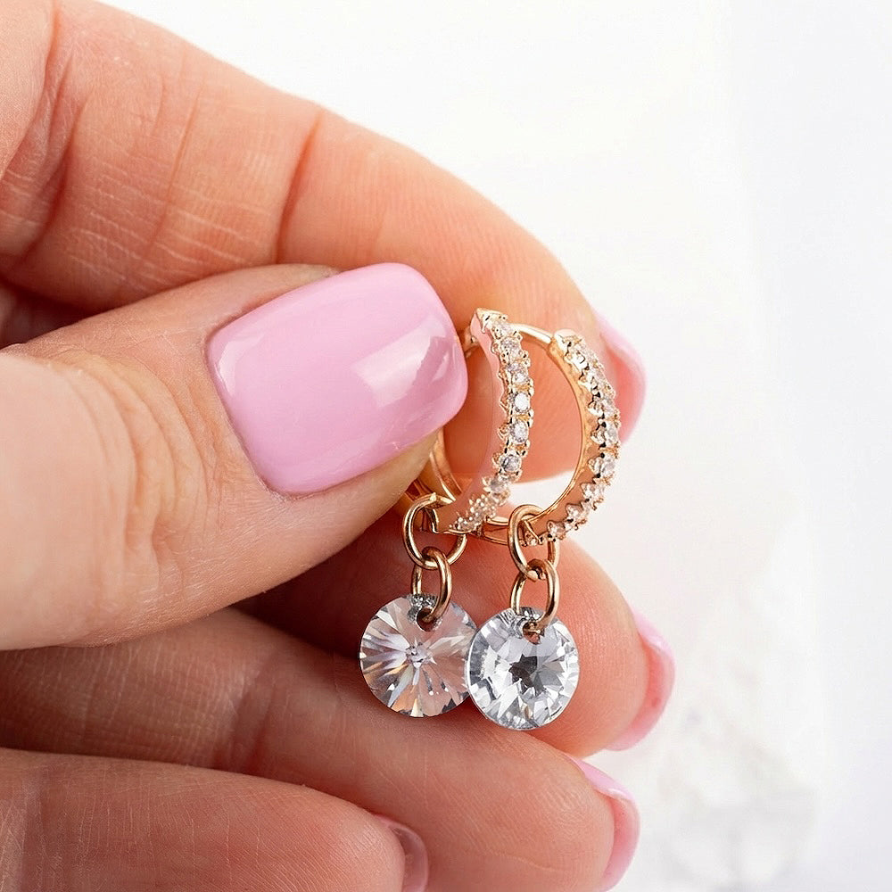 Auskari, ko vari nēsāt divos veidos, ar piekariņu vai bez. Auskari tiem, kam gribas mazliet vairāk mirdzēt. Piemērots aksesuārs arī kādam nozīmīgam pasākumam, piemēram, kāzu auskari līgavai.