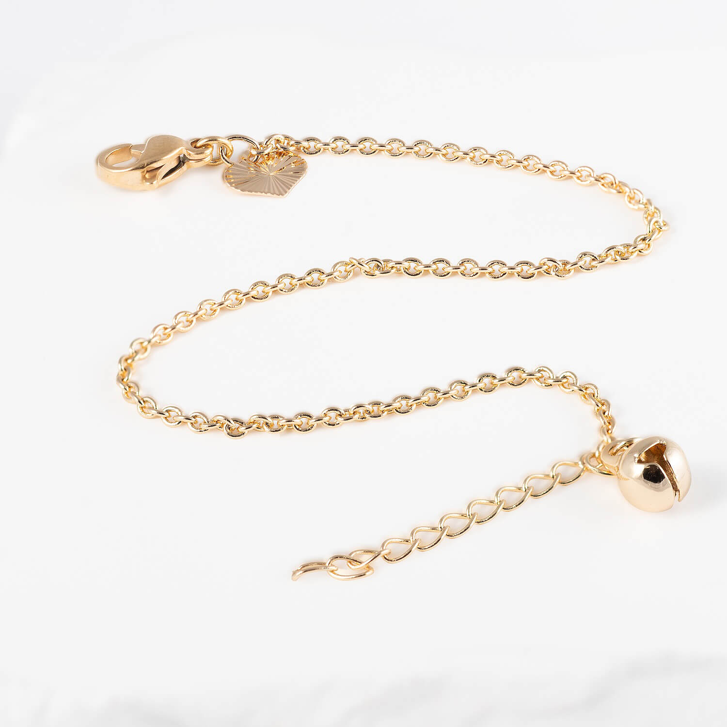 Eleganta rokas ķēdīte ar zvaniņu un sirds simbolu