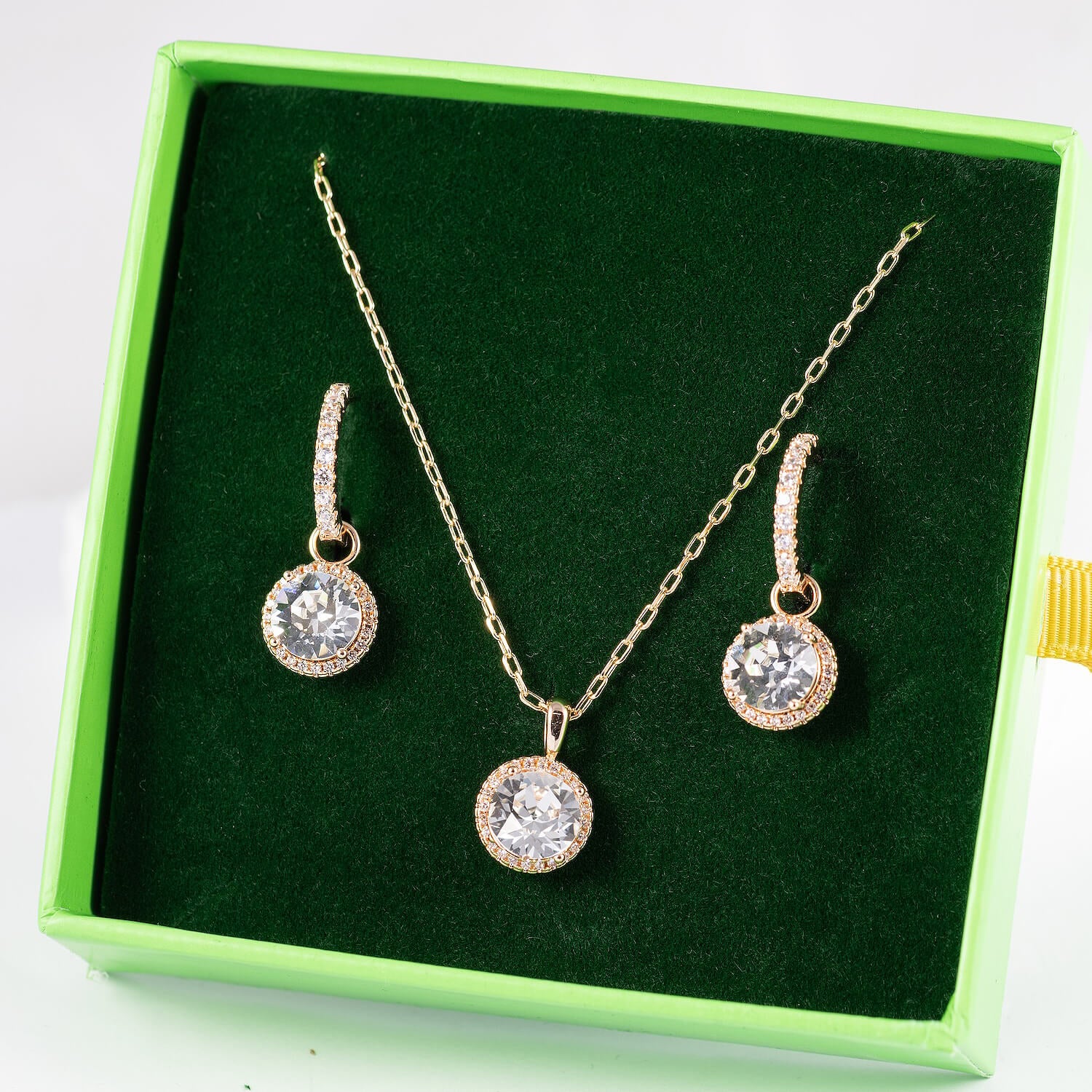 Eleganti kristālu aplīši. Smalka ķēdīte ar auskariem būs jauka dāvana svētkos sievietei, kurai patīk klasika.